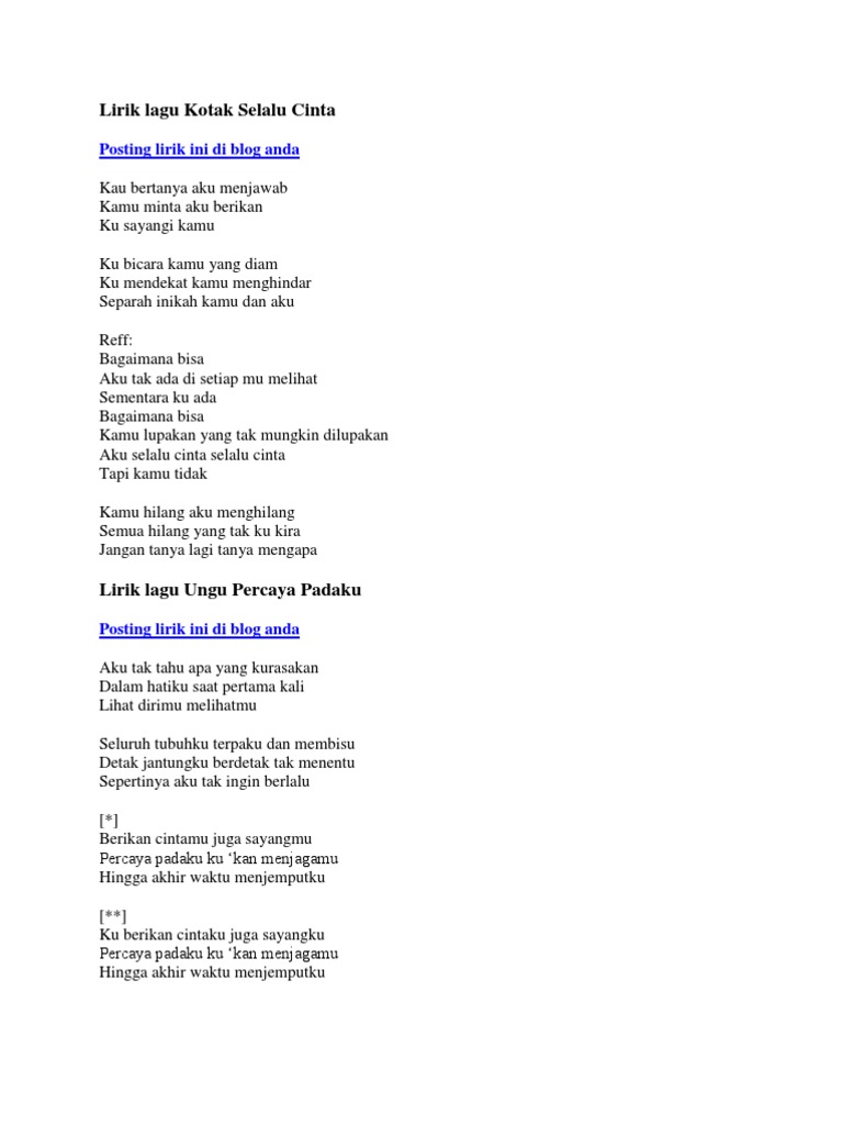 Lirik Lagu Ungu Percaya Padaku Pdf
